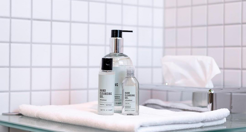 La nostra linea Spirit of Travel presenta una texture leggera, si applica facilmente e si assorbe rapidamente, garantendo comfort e cura per le mani grazie ad un efficace 70% di alcol, mentre il suo design elegante e minimalista si integra perfettamente con l'ambiente alberghiero, combinando praticità con stile.